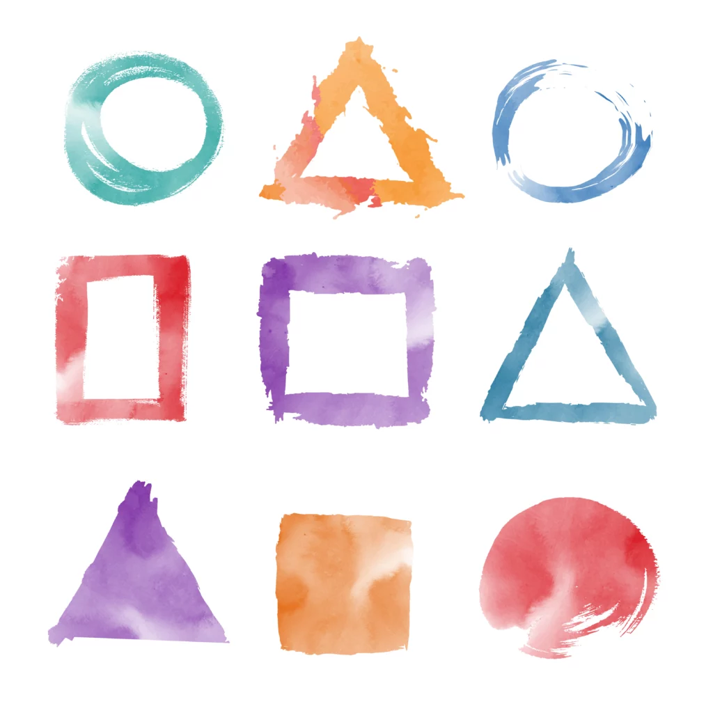 - Cuerpos geométricos: un prisma y una pirámide de base triangular y cuadrada, un cilindro, un cubo, un tetraedro y un cono.