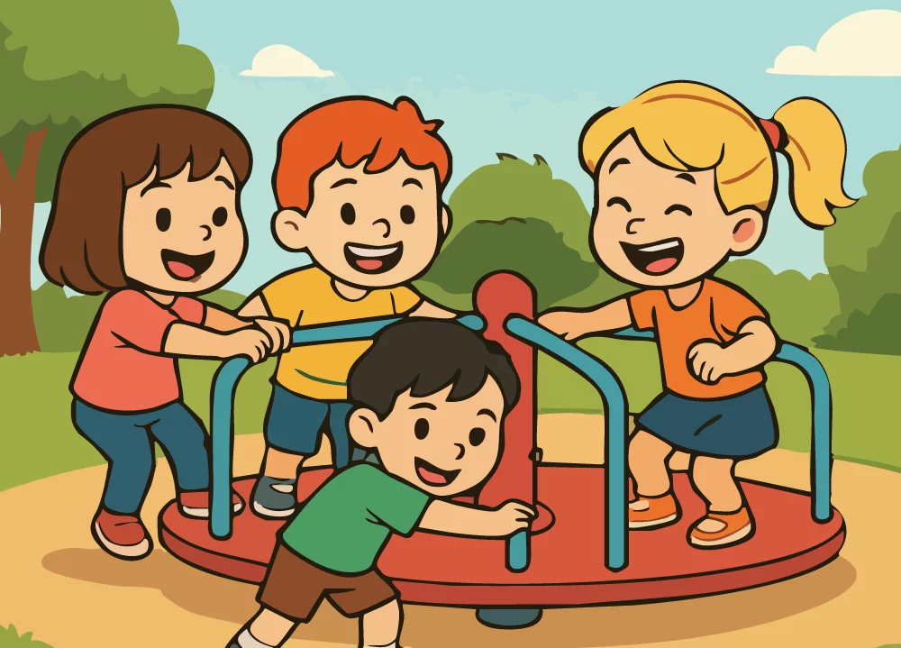 Pueden entregarse formas en cartulina que ayuden a dibujar los finales (por ejemplo: círculos para las caras o calesita, una forma de juguete, un trepador, etc).